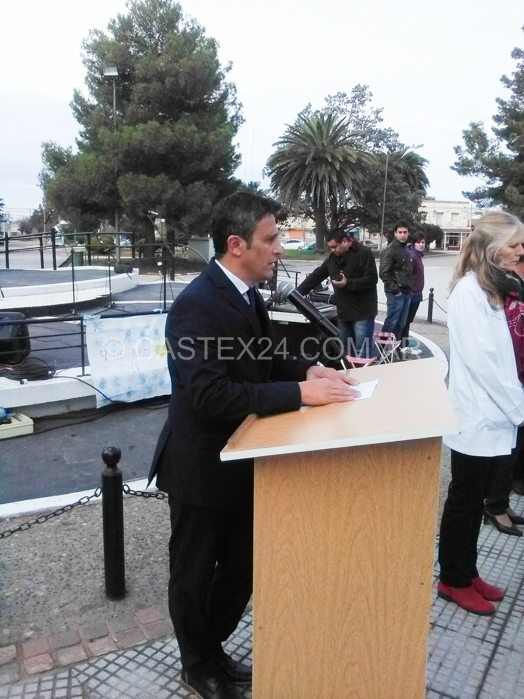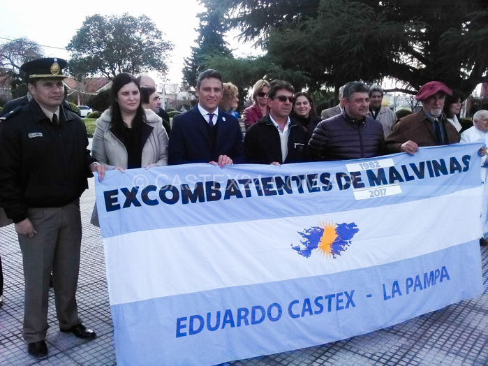 A las 11 dio inicio del acto central por el 9 de Julio en Eduardo Castex, se desarrolló en la plaza San Martín y estuvo encabezado por el intendente Julio González, acompañado por funcionarios de su gabinete, la diputada Marisol Sciú, concejales y ex combatientes de Malvinas.