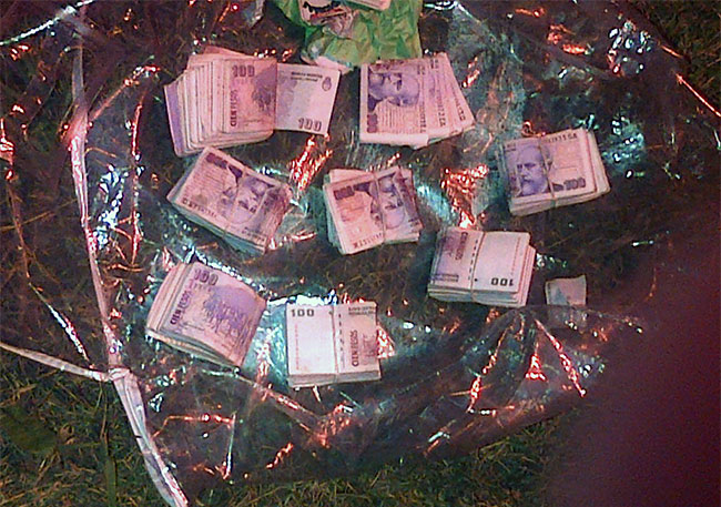 La Policía, en un operativo de rutina, detuvo a un Corsa en la intersección de las rutas 35 y 10 en el que transportaban ocultos unos 100 mil pesos en efectivo que serían producto de la comercialización de estupefacientes. Dos personas, uno de nacionalidad paraguaya y otro argentino, quedaron detenidos.