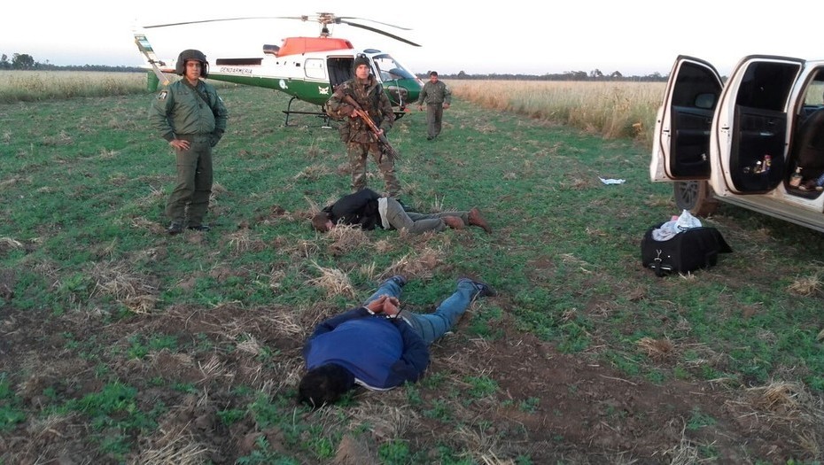 En forma paralela, los gendarmes cercaron el lugar donde habían sido arrojado los estupefacientes, en el que debían recogerlo personas que estaban apostadas en tierra y que forman parte de otro eslabón de la cadena del tráfico de drogas.