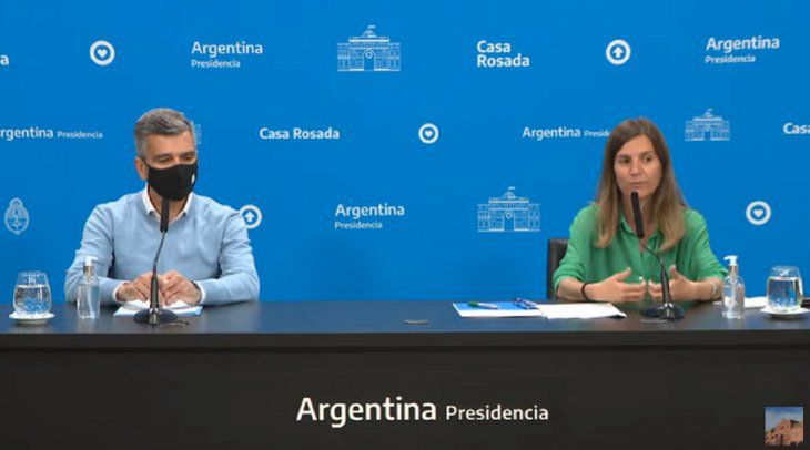 El ministro de Desarrollo Social, Juan Zabaleta, y la directora Ejecutiva de ANSES, Fernanda Raverta ofrecieron este lunes una conferencia de prensa en la Casa Rosada, en la que anunciaron medidas para los sectores más postergados.