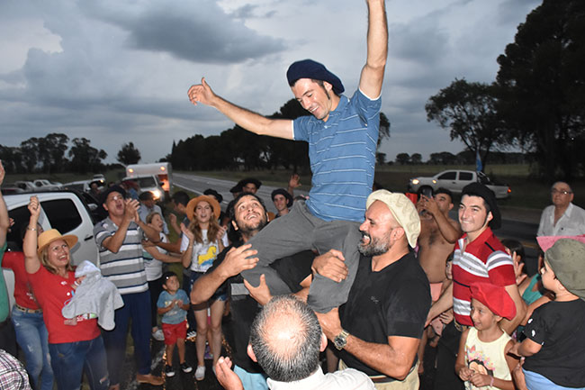 Amigos, familiares, conocidos y simpatizantes de las domas se juntaron ayer sobre la Ruta Nacional 35, frente a la sede de la Facultad de Agronomía, para darle la bienvenida.
