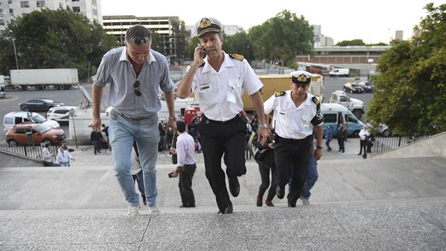 El vocero de la Armada Argentina, capitán de navío Enrique Balbi, ingresa al edificio Libertad, sede de esa fuerza, para posteriormente dar un informe sobre el submarino San Juan.cuya última posición fue reportada hace una semana. Foto: Télam