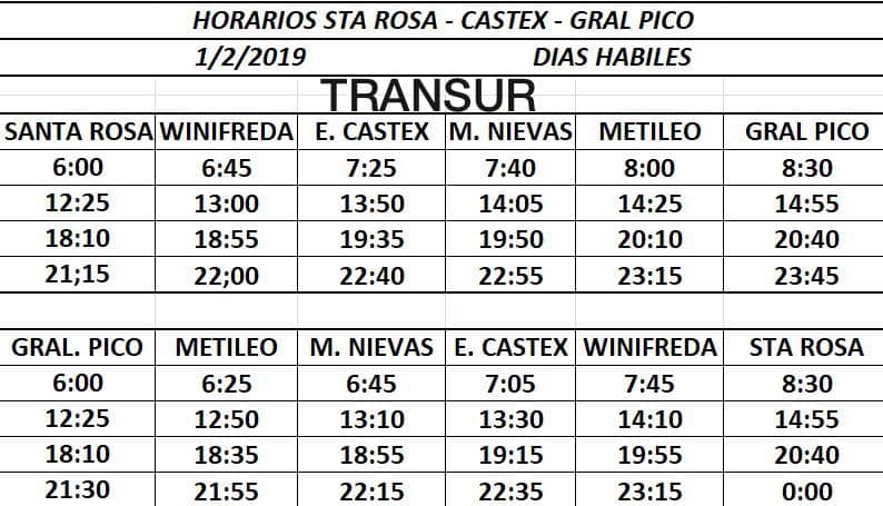 En la mañana de hoy siendo el primer día de febrero la empresa Transur logró la licencia para que el gobierno provincial le permita realizar los recorridos Santa Rosa – General Pico pasando por Eduardo Castex y Catriló.