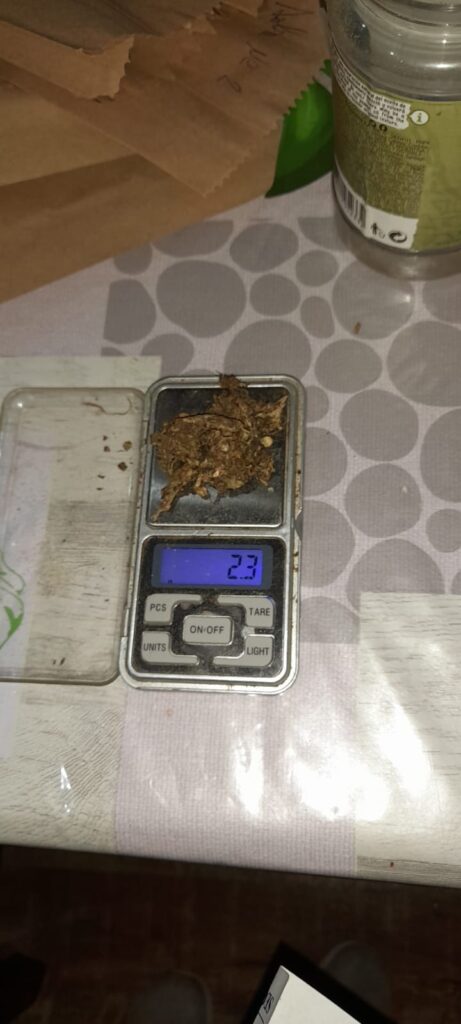 Durante el allanamiento los efectivos secuestraron una balanza de precisión, elementos de corte, anotaciones, recortes para la fracción de sustancias, pastillas utilizadas para rebajar la droga, 20 dólares, $153.950; 37,5 gramos de cocaína, envoltorios que contenían marihuana, platos donde se fraccionaba la sustancia, un arma de fuego, plantas de la especie cannabis sativa y una motocicleta.