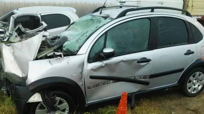 En ese mismo momento y en sentido opuesto circulaba un Volkswagen Gol conducido por una mujer que transitaba desde la ciudad de Ingeniero Luiggi y, según las versiones que conoció esta corresponsalía, al encontrarse sorpresivamente con el accidente, no pudo evitar impactar con el Citroen C3 y con el chofer del camión que intentaba auxiliar al conductor del primer vehículo.