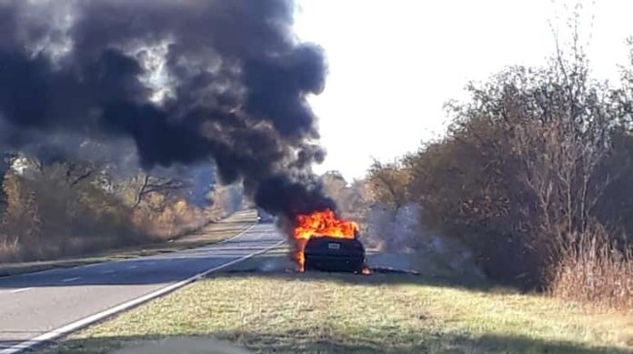 Un automóvil Escort se incendió este jueves y quedó destruido en la ruta nacional 35, en proximidades de Winifreda.