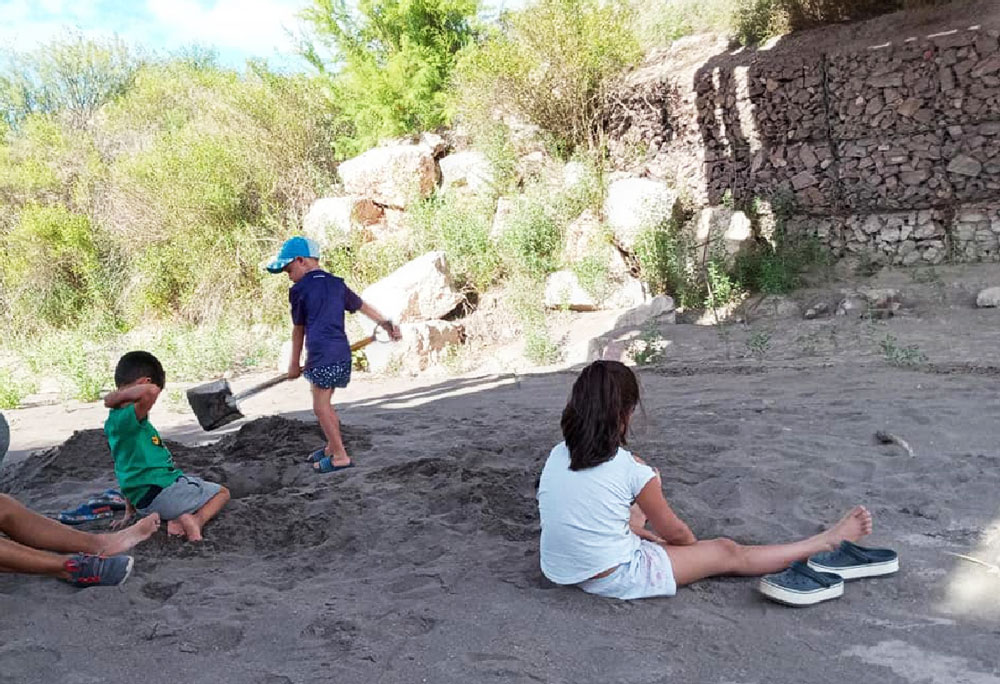 La imagen la tomó el concejal de Santa Isabel, Cristian Etchegaray: sus hijos y un sobrino juegan en el cauce seco del río. «Me llega un mensaje de felicitación por Ojo de Agua de un compañero y me dice ‘YO LLEVO A MIS NIÑOS AL ATUEL'», posteó en las redes sociales -emocionado- el intendente de Uriburu, Pascual Fernández.