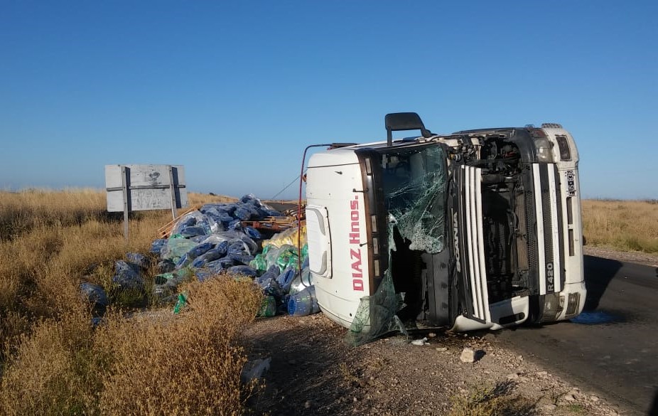 El siniestro ocurrió a las 4 de este domingo y por fortuna el chofer del camión no sufrió heridas. En el lugar trabajaron personal policial de Puelches y del Parque Nacional Lihuel Calel, además de la policía de Gobernador Duval