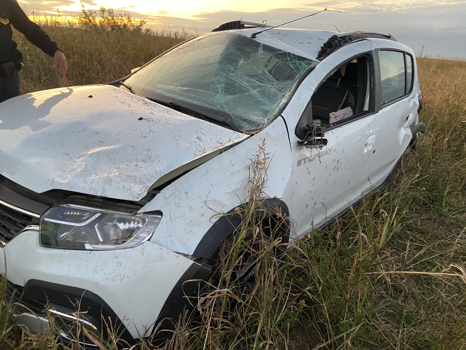 Pasadas las 18 horas de este sábado se produjo un vuelco en la ruta nacional 35 a unos 10 kilómetros al norte de Eduardo Castex, una Renault Steepway terminó volcando cuando sobrepasaba un camión y a este se le reventó un neumático del acoplado.