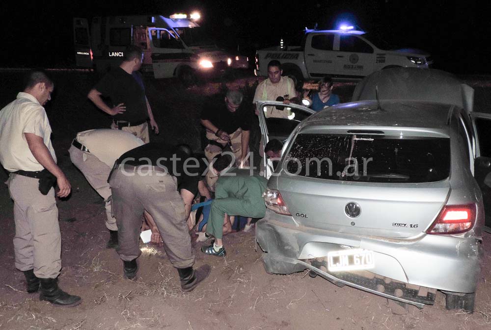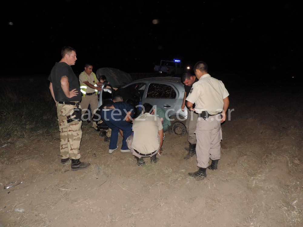 Este medio llegó cuando la mujer era rescatada del rodado, debieron cortar el cinturón de seguridad con un cuchillo y presentaba grandes dolores en su cabeza y cuello, siempre en estado consciente. La ambulancia del hospital de Eduardo Castex trasladó a la mujer a la ciudad de General Pico a cargo del Dr. Alfonzo, en el lugar trabajaron policías de Monte Nievas, Eduardo Castex, General Pico y Metileo.