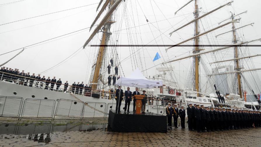 El acto se realizó en la Dársena norte del Puerto de Buenos Aires, donde el sábado partirán los marinos al mando del capitán de navío Ignacio Errecaborde, quien conducirá a los guardiamarinas de las promociones N° 144 y 145 del Escalafón Comando Naval e Infantería de Marina y N° 100 y 101 del Escalafón Intendencia de la Escuela Naval Militar.